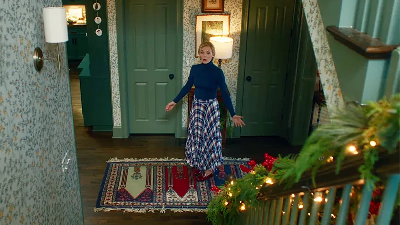 If you’ve watched Amazon Prime’s Oh. What. Fun. starring Michelle Pfeiffer, you’ve probably found yourself pausing the movie just to admire the house. Every room bursts with personality through layered wallpaper patterns, unexpected cabinet colors, and that stunning blue and white plaid couch that has everyone asking “where can I get one?” This home, much like the beloved Home Alone house, proves that maximalist, pattern-rich interiors create spaces that feel lived-in, cozy, and deeply personal.